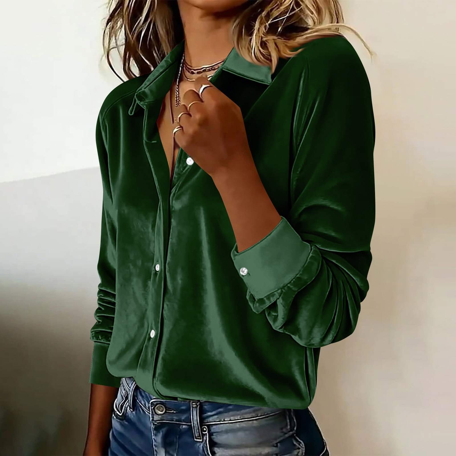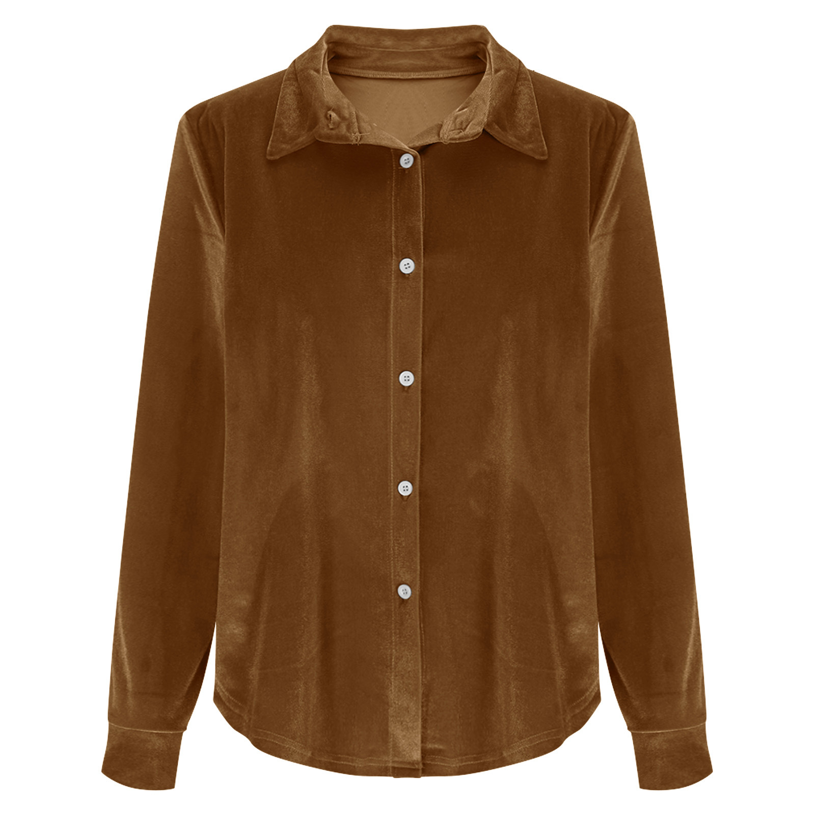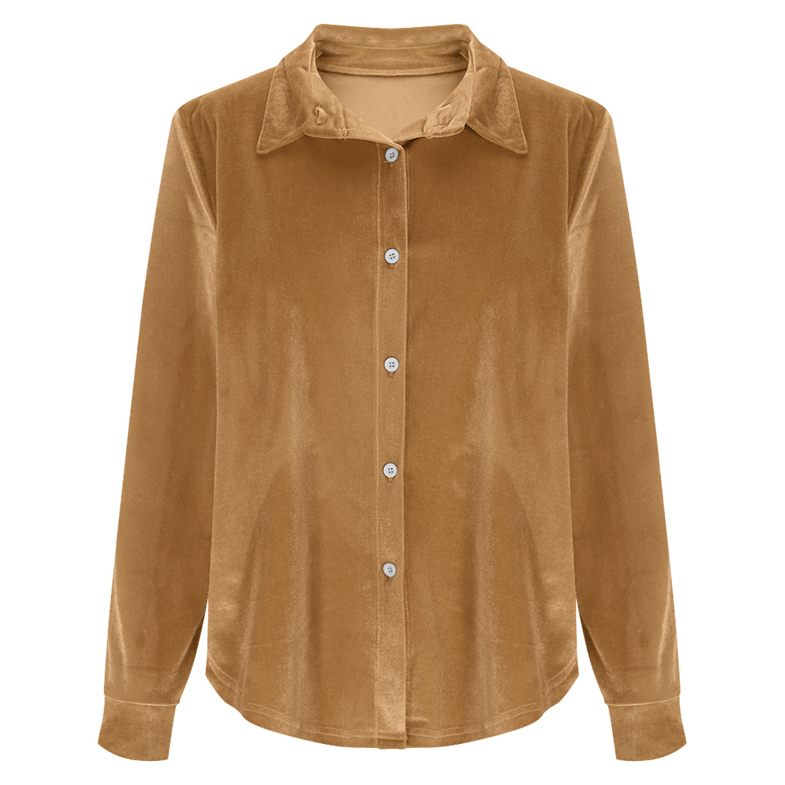 Versatile Solid-color Gold-velvet Shirt With A Lapel Collar