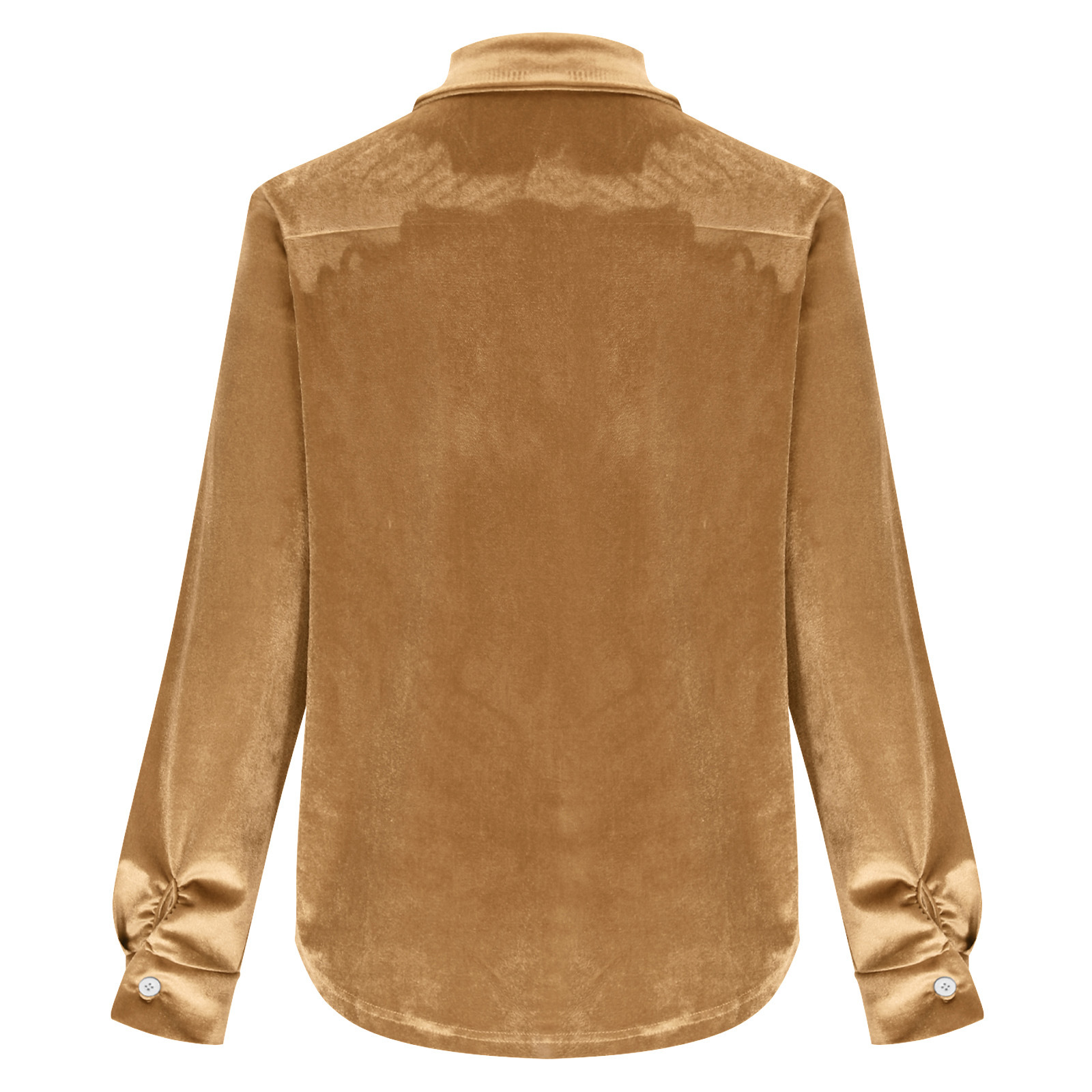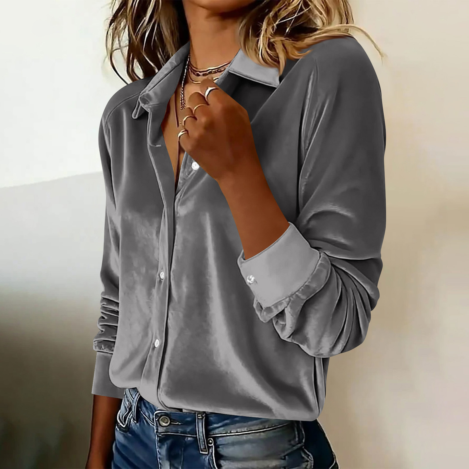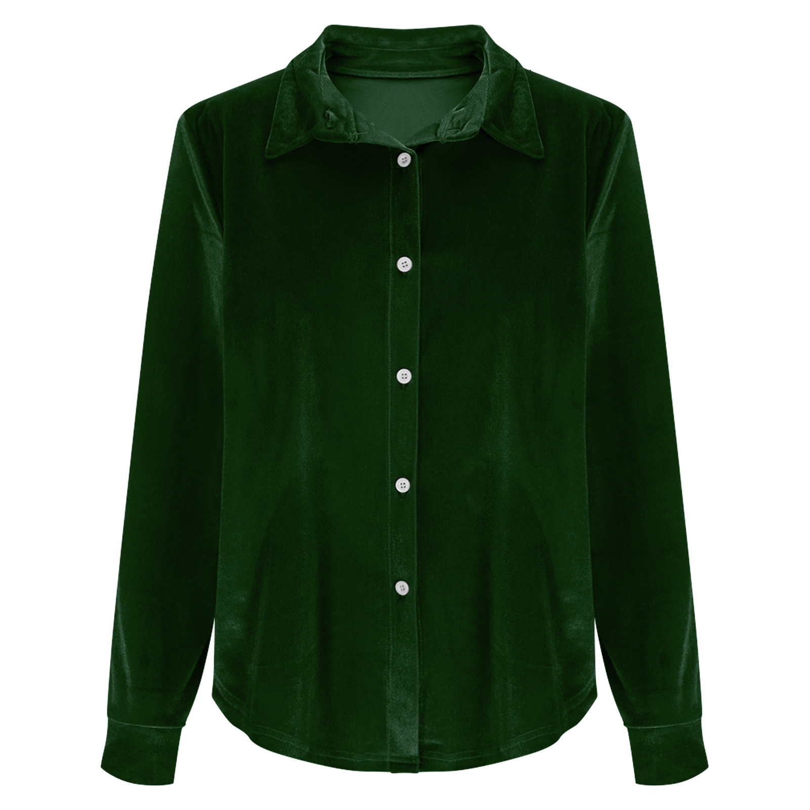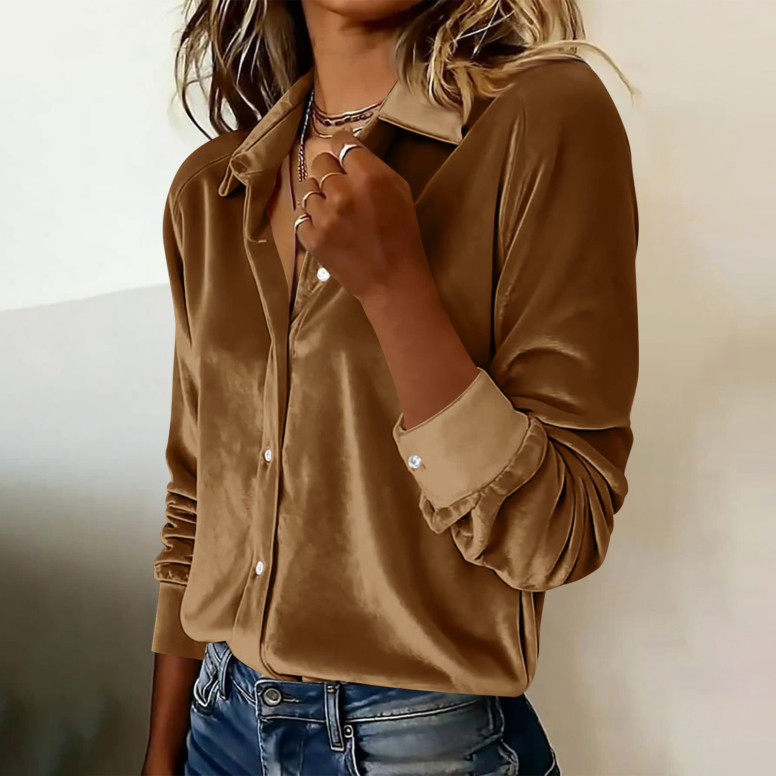 Versatile Solid-color Gold-velvet Shirt With A Lapel Collar